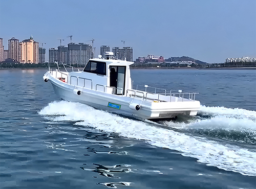 The hull is constructed of high-performance fiberglass reinforced plastic, which is corrosion-resistant and impact-resistant, ensuring low maintenance and a long service life.